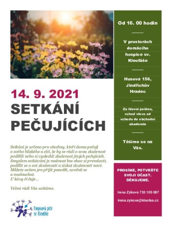 V úterý 14. září připravujeme setkání pro pečující, které je určeno pro všechny, kteří se doma starají o svého blízkého a cítí, že by se rádi o svou zkušenost podělili nebo si vyslechli zkušenosti jiných pečujících.