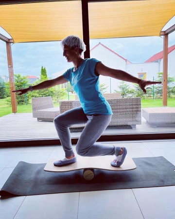 Stále celkem často běhám, ale prokládám to jízdou na kole, na koloběžce. Více zařazuji strečink, protahování a balanční cvičení a posilování. Teď v létě chodím plavat, jezdím na paddleboardu a také na in-line bruslích. Ráda si zahraji beachvolejbal…